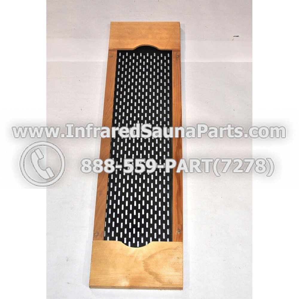 Heater grill cover available in hemlock wood. Measures 30 inches from top to bottom and 7.5 inches from side to side. Covers the standard ceramic heater housing and protects the ceramic heating rod. Fits most applications. Styles may vary.